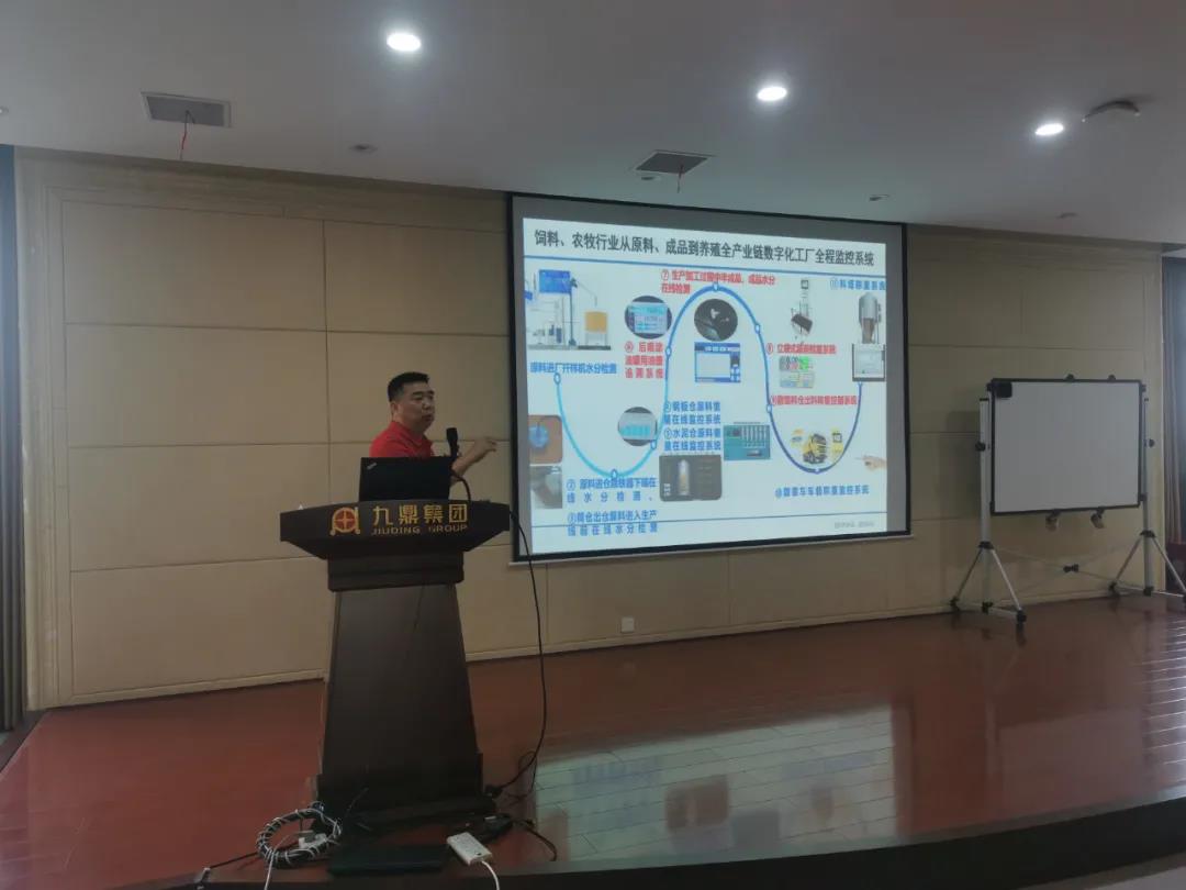 湖南九鼎農(nóng)牧基地廠長謝爭光在會場進(jìn)行新工藝/新技術(shù)/新設(shè)備分享與答疑