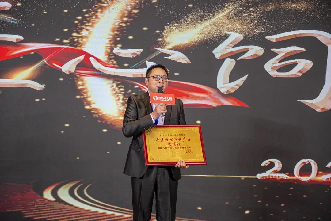 在頒獎典禮上,集團技術研發(fā)中心總經(jīng)理江書忠榮獲“年度領軍人物”,集團教槽料產(chǎn)品“尚優(yōu)佳”榮獲“年度匠心無抗飼料產(chǎn)品獎”。這是行業(yè)以及社會各界對九鼎集團研發(fā)實力以及產(chǎn)品品質的高度認可及肯定。