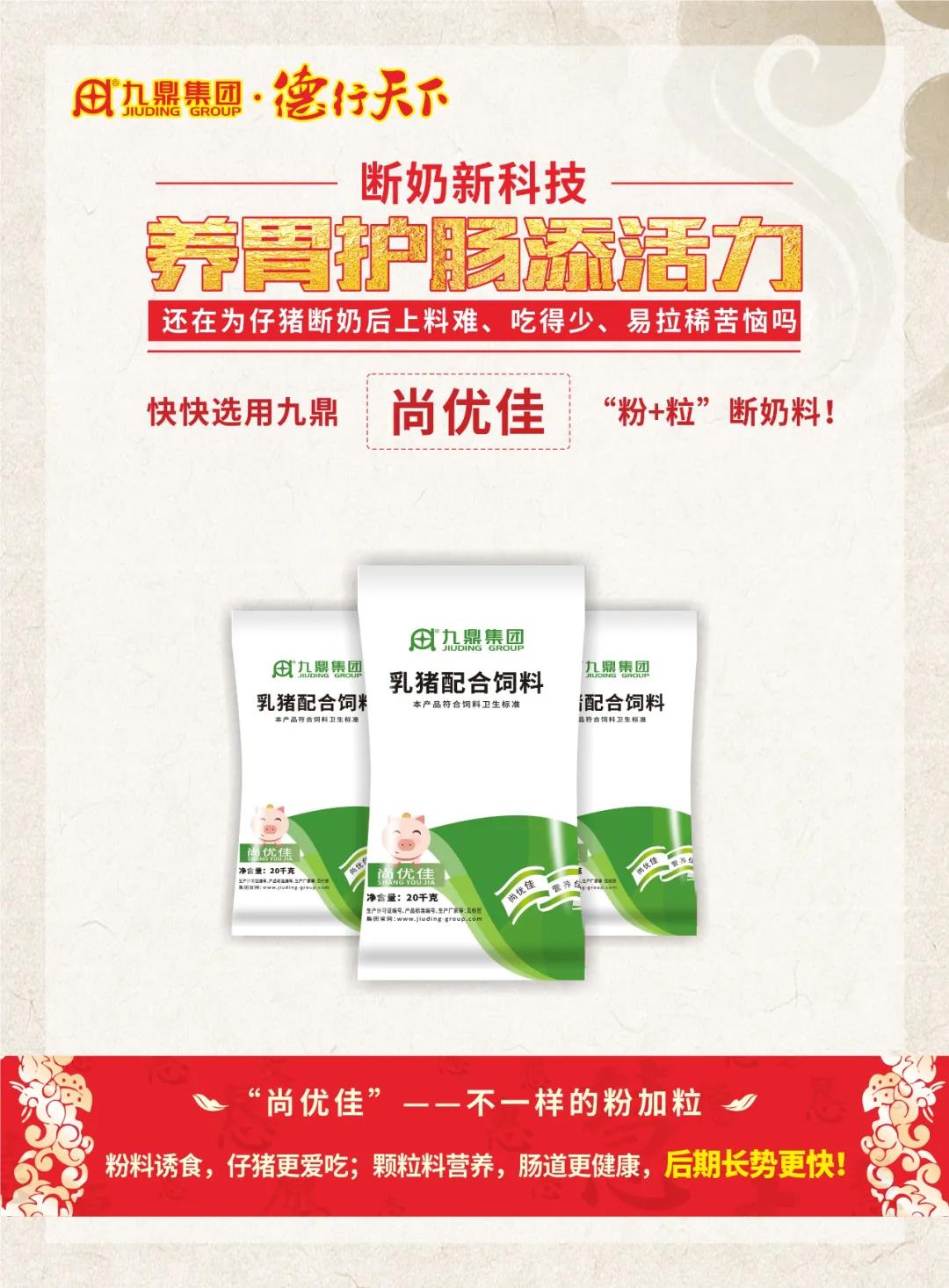 馬總說:九鼎集團1997年在行業(yè)內率先推出“超早斷奶料”,27年來九鼎集團始終圍繞一頭豬專注于精準營養(yǎng),為廣大客戶提供無抗環(huán)保綠色安全的產(chǎn)品和服務,踐行了不忘初心堅持匠心產(chǎn)品。教槽料的普及、使用程度的高低代表著養(yǎng)豬水平的高低,期盼同行業(yè)企業(yè)與我們一起推廣好產(chǎn)品,推動養(yǎng)豬業(yè)的發(fā)展進步。在各個有識之士和優(yōu)秀企業(yè)的共同努力中,養(yǎng)豬行業(yè),未來可期。