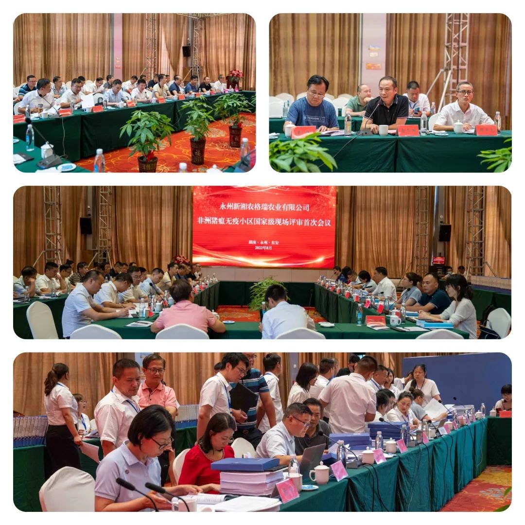 國家評估專家組一行先后前往永州新湘農(nóng)格瑞農(nóng)業(yè)有限公司的獸醫(yī)實驗室、車輛洗消中心、原種豬場、轉運中心、人員物資隔離中心及縣級獸醫(yī)實驗室、動物衛(wèi)生監(jiān)督機構等場所等地,通過聽取匯報、座談交流、查閱檔案資料、現(xiàn)場核查和視頻連線等方式進行現(xiàn)場查驗,并在縣城召開了評審會。并在現(xiàn)場評審末次會議上,最終專家組一致同意給予永州新湘農(nóng)格瑞農(nóng)業(yè)有限公司非洲豬瘟無疫小區(qū)“建議通過”的現(xiàn)場評審結果。
