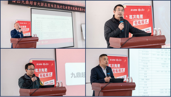 ▲【圖①】隆回九鼎營銷副總肖永主持會議;【圖②】集團宣傳部總監(jiān)陳冬講解了行業(yè)趨勢以及集團六大核心優(yōu)勢助力養(yǎng)殖;【圖③】集團產(chǎn)品經(jīng)理蔡仁賢分享超吉大高價值產(chǎn)品試驗數(shù)據(jù),以及展示偏食試驗視頻解讀;【圖④】隆回九鼎技術(shù)服務(wù)經(jīng)理蔡鴻進行了當前疫情防控,生物安全知識培訓(xùn)。