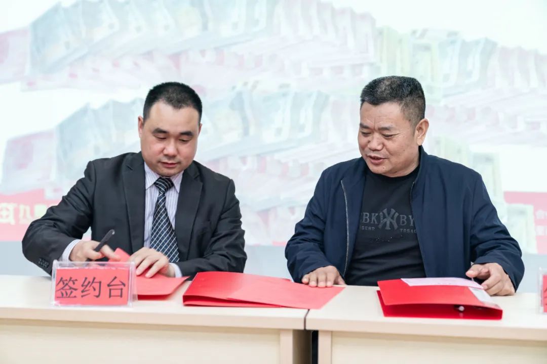 ▲隆回九鼎總經(jīng)理羅海輝與客戶現(xiàn)場進行批次育肥兜底簽約儀式