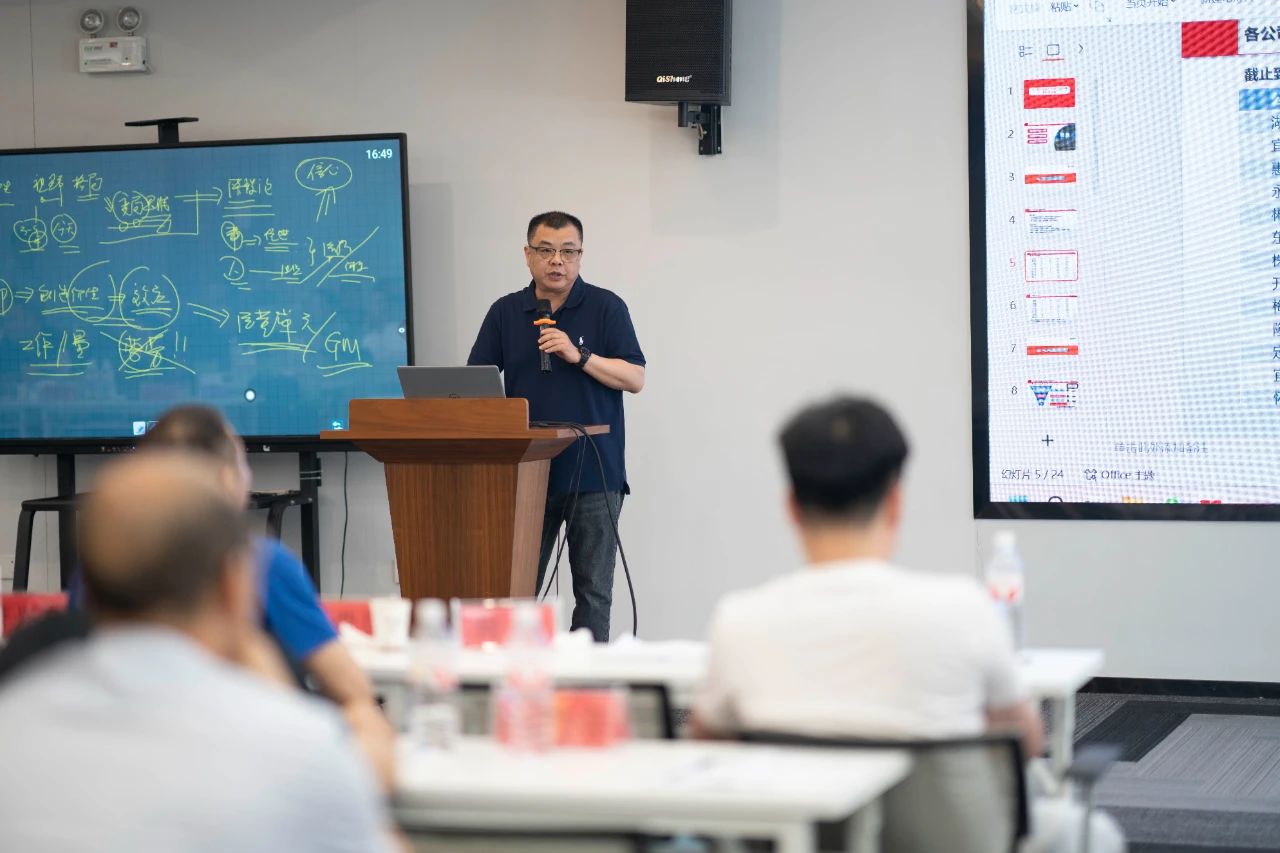 ▲集團(tuán)營(yíng)銷(xiāo)中心總經(jīng)理袁朔烈介紹了《一縣一作戰(zhàn)地圖應(yīng)用指南和管理規(guī)則》