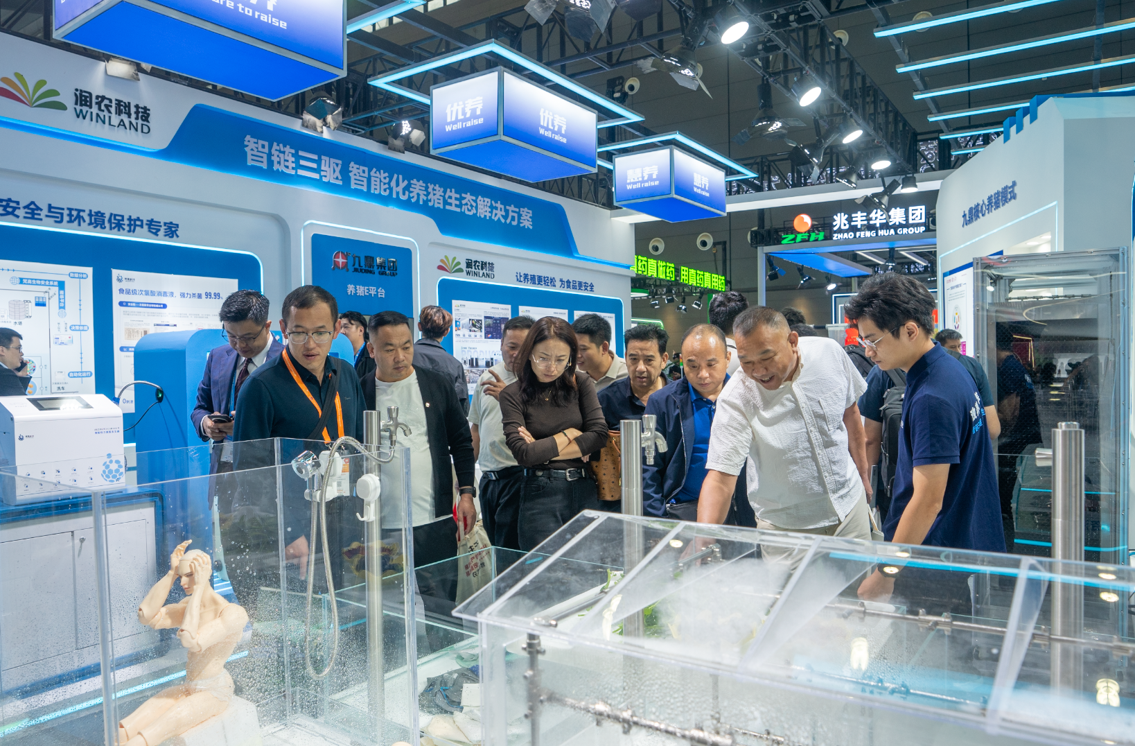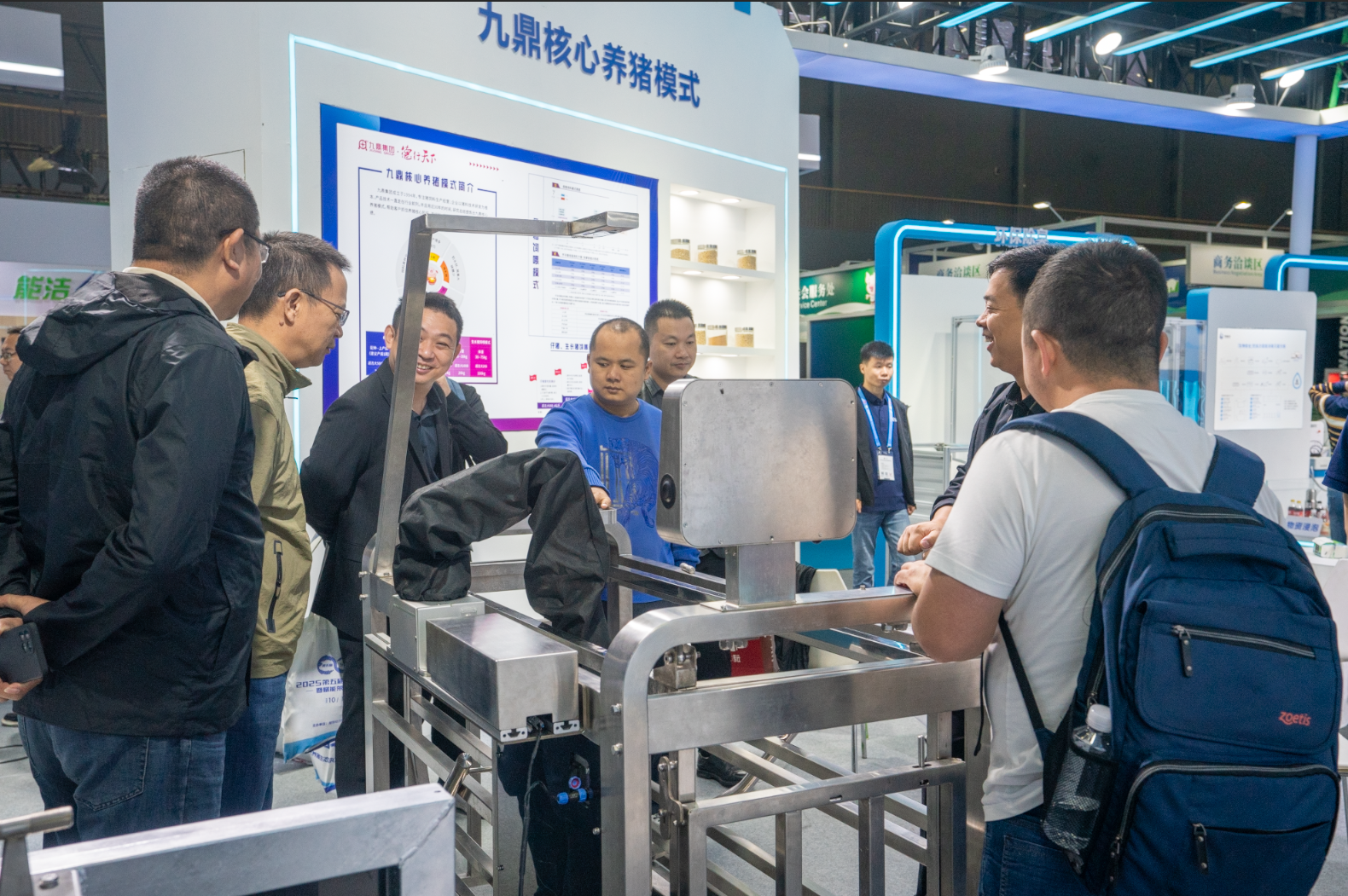 在九鼎集團(tuán)展區(qū)內(nèi),“智鏈三驅(qū)”智能化養(yǎng)豬解決方案的亮相吸引了大量專業(yè)觀眾駐足交流。