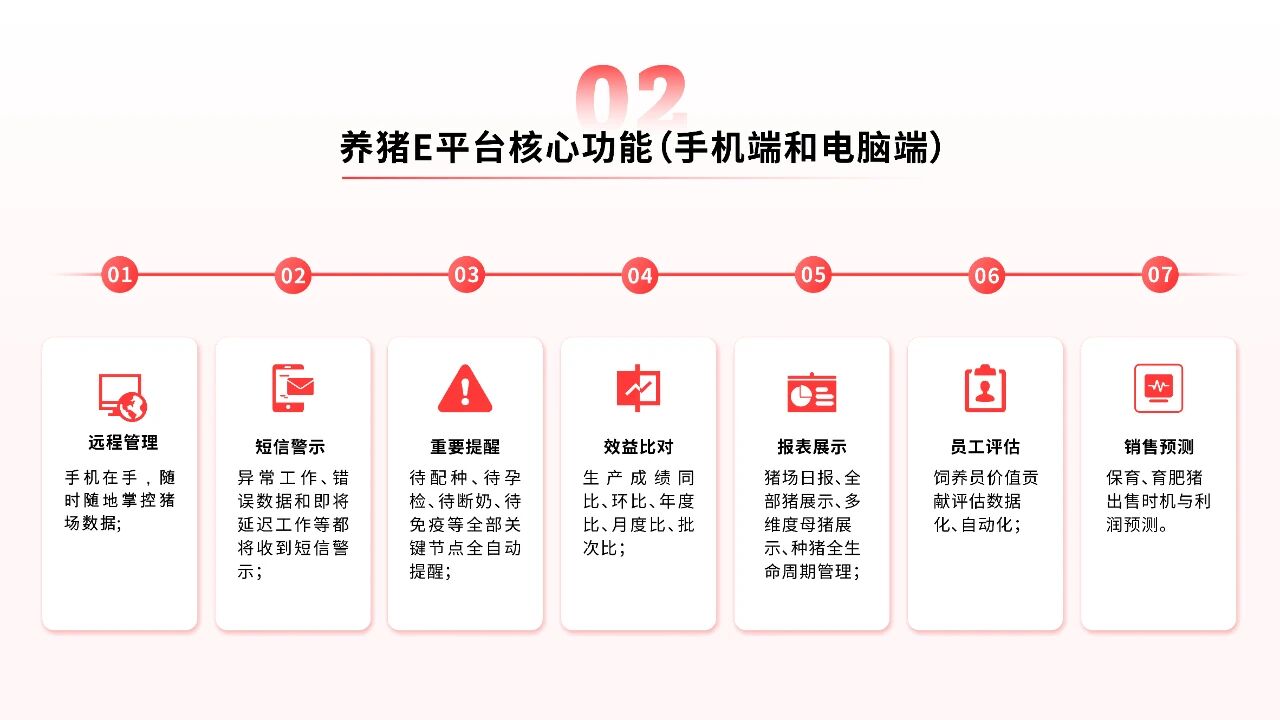 養(yǎng)豬E平臺是九鼎集團(tuán)專為規(guī)模豬場量身打造的專業(yè)數(shù)字化管理軟件。它深刻理解規(guī)模豬場的痛點和需求,通過精細(xì)的數(shù)據(jù)管理,讓養(yǎng)殖從靠經(jīng)驗變?yōu)榭繑?shù)據(jù),從而實現(xiàn)生產(chǎn)過程全程可視、管理決策有據(jù)可依,為豬場決策和生產(chǎn)改良提供基礎(chǔ)和支持,運(yùn)用簡單、實用、高效的工具提升養(yǎng)殖效益,為生豬產(chǎn)業(yè)高質(zhì)量發(fā)展注入數(shù)字動能。