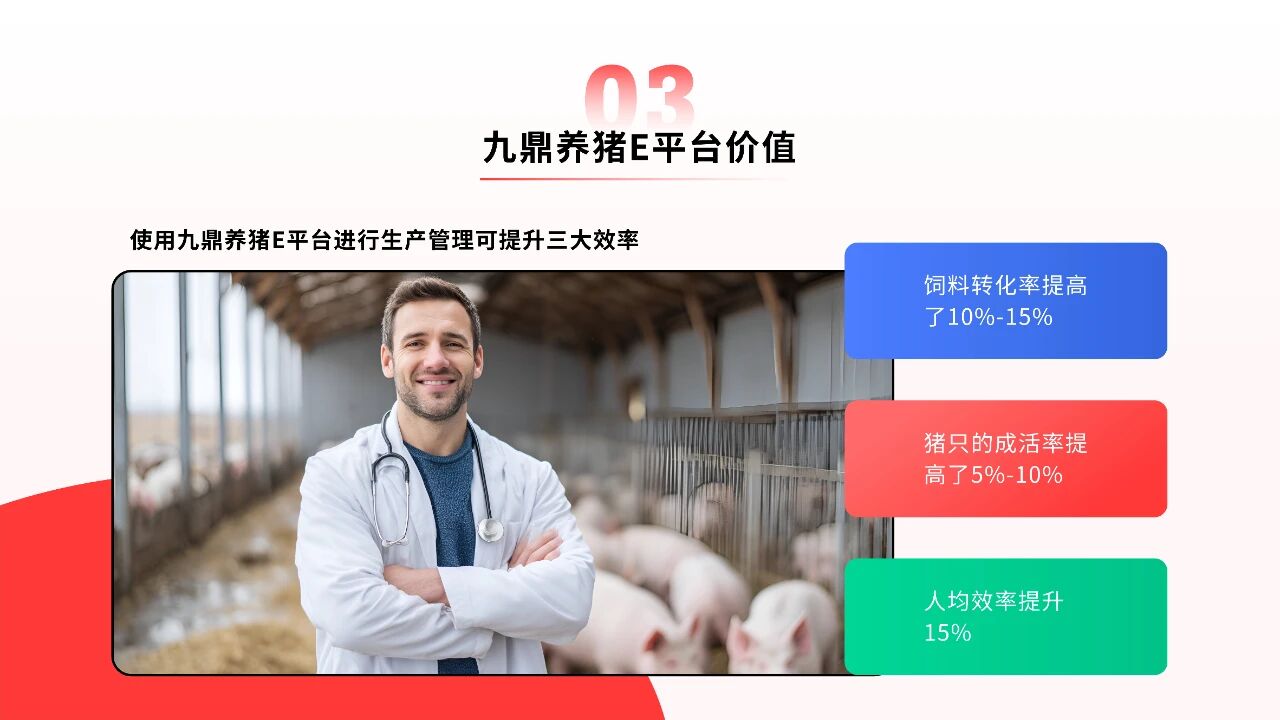 未來,隨著智能化技術(shù)在養(yǎng)豬行業(yè)的深入應(yīng)用,九鼎集團(tuán)將繼續(xù)深化“智鏈三驅(qū)”解決方案的技術(shù)內(nèi)涵,拓展應(yīng)用場景,與行業(yè)伙伴共同推動中國養(yǎng)豬業(yè)向更智能、更高效、更可持續(xù)的方向發(fā)展。
