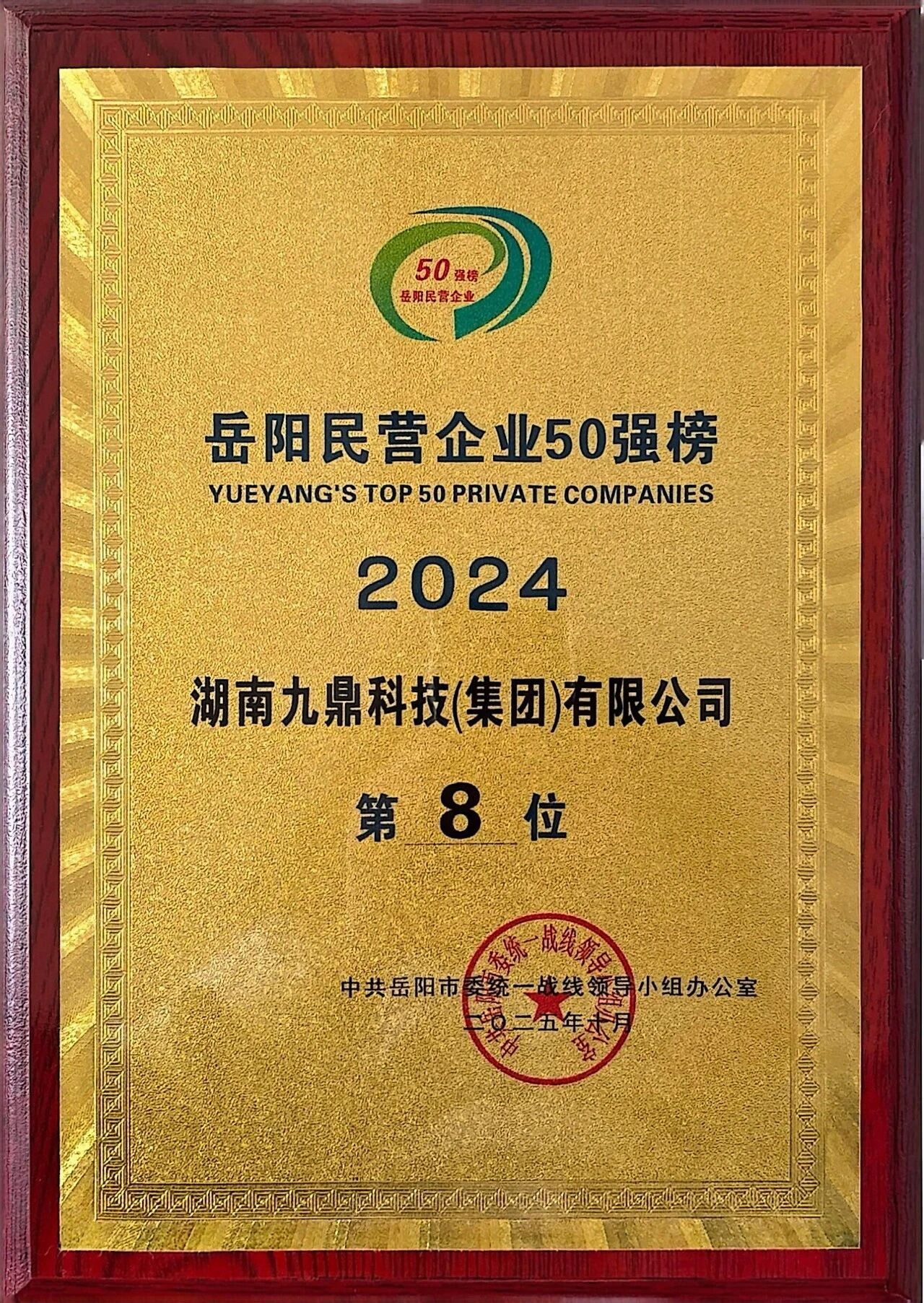 岳陽市第二個“岳陽企業(yè)家日”主題活動,湖南九鼎科技(集團)有限公司榮膺岳陽民營企業(yè)第8位